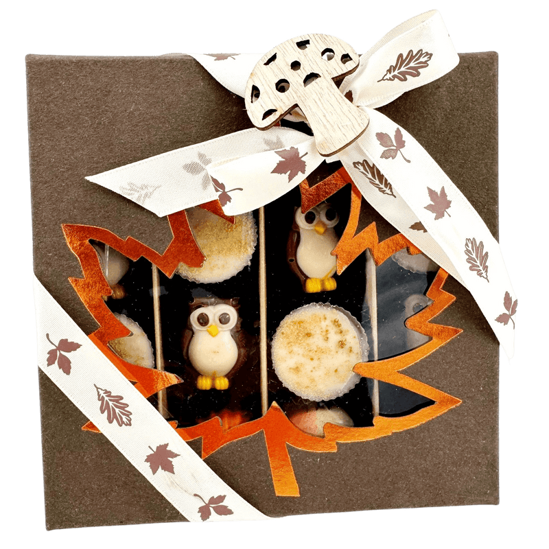 Discover our autumn chocolate praline box, 16 handcrafted Belgian chocolates in an elegant dark brown gift box. Perfect for seasonal gifting or indulgence.