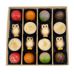Discover our autumn chocolate praline box, 16 handcrafted Belgian chocolates in an elegant green gift box. Perfect for seasonal gifting or indulgence.