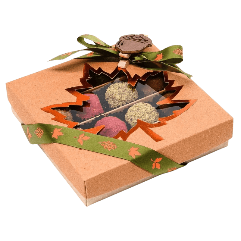 Enjoy our mix of autumn Belgian truffles in a craft gift box. Handcrafted in Brussels, this seasonal assortment combines rich cacao with gourmet flavors, an elegant gift or indulgence.