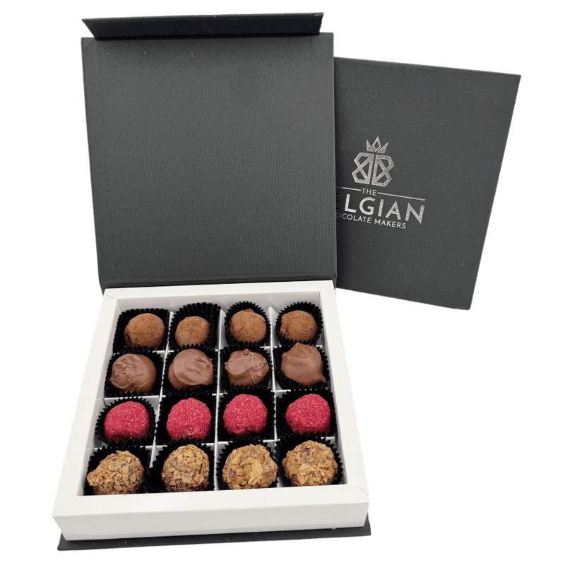 Indulge in our box of 16 Belgian chocolate truffles in mixed flavours, crafted in Brussels with ethical cacao. A refined gift or gourmet delight to share.