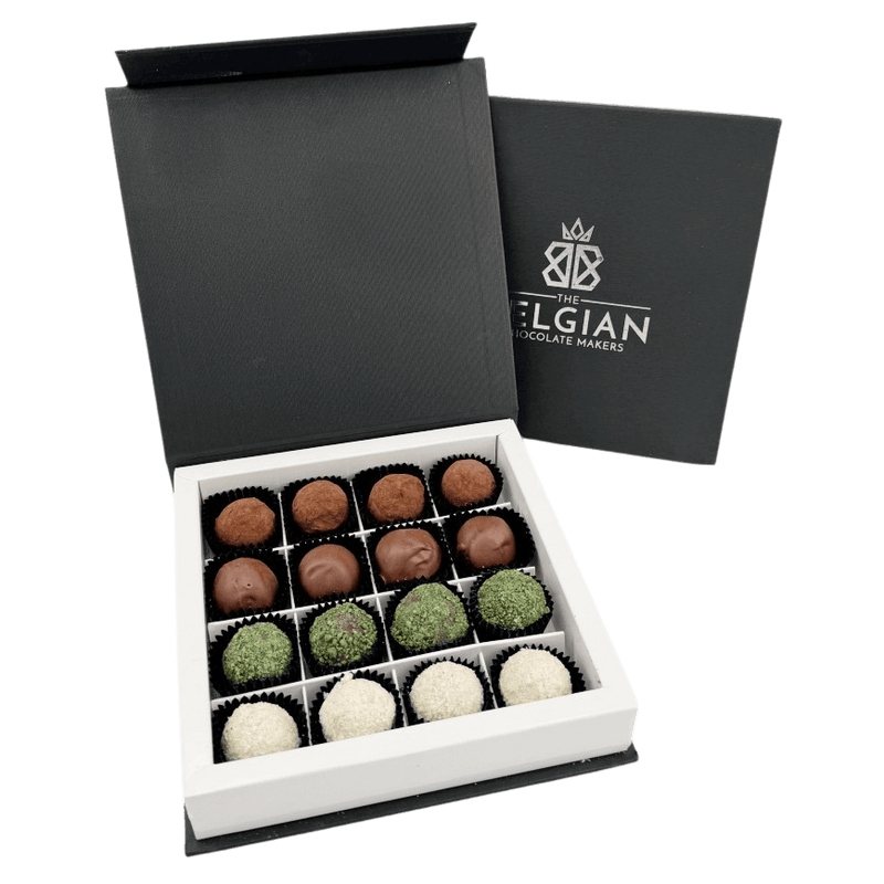 Indulge in our box of 16 Belgian chocolate truffles in mixed flavours, crafted in Brussels with ethical cacao. A refined gift or gourmet delight to share.