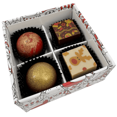 Celebrate the holidays with our Christmas box of 4 Belgian pralines, an elegant assortment of handcrafted chocolates made with premium cacao, perfect for gifting or sharing sweet festive moments with loved ones.