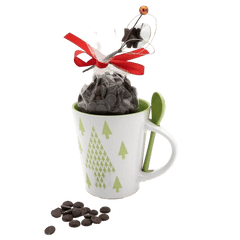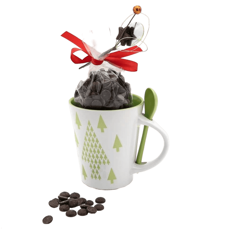 Dark chocolate drops in a Christmas tree mug 200g, a rich Belgian treat presented in a charming festive tree mug. Perfect for gifting, cosy winter moments, or adding sweetness to the holiday season.