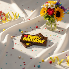 Celebrate with our dark chocolate messaging bar 45g “HAPPY BIRTHDAY”, handcrafted in Brussels by certified artisan chocolatiers. Made from rich, ethical, and traceable cacao, a delicious Belgian chocolate gift to make any birthday sweeter.