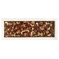 Fantasy dark chocolate bar 550 grs with cacao nibs, cashew nut, kumquat and redcurrant chunks