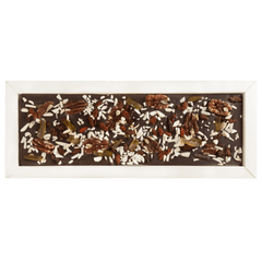Ingredients: Cocoa mass, sugar, roasted PECANS, black currants, lemon, ALMOND, cocoa butter, sunflower lecithin.