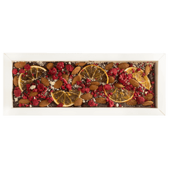 Fantasy dark chocolate bar 375 grs with raspberry, orange and almond chunks