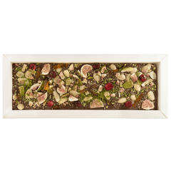 Discover our Fantasy Belgian chocolate bars 375g, handmade with a luscious mix of fig, cranberry, almond, lemon, and pistachio. A gourmet extra-large treat, perfect for gifting or indulgence.