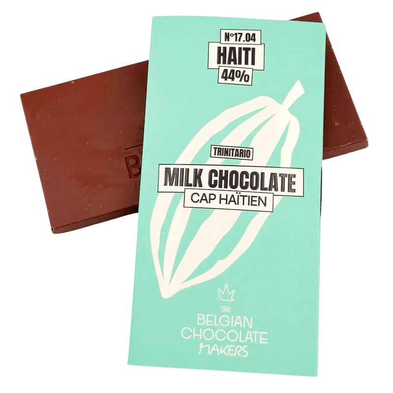 Handmade milk chocolate bar Cap Haïtien 44%, crafted in Brussels from Haitian single-origin cacao. A 100g bar with smooth texture and refined flavour notes.