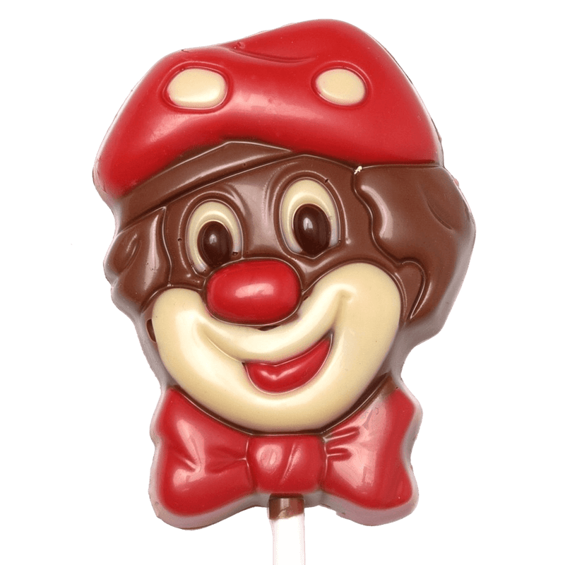 Brighten your day with our milk chocolate clown lollipop 30g, a joyful Belgian treat made from smooth, creamy milk chocolate. 🤡🍭 Fun, colorful, and delicious — perfect for parties, gifts, or a sweet smile anytime!