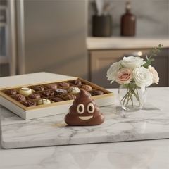 Have a laugh with our milk chocolate emoji poo lollipop 30g, a funny Belgian treat made from smooth, creamy milk chocolate. 💩🍭 Playful, delicious, and guaranteed to make everyone smile!