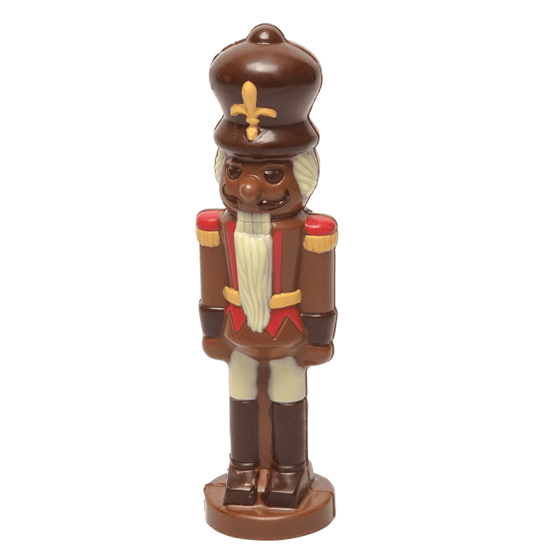 Enjoy our handcrafted Christmas nutcracker soldier in smooth milk chocolate, made in Brussels with cocoa from Haiti. A festive 230g delight for the holiday season.