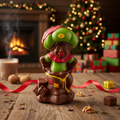 Discover Père Fouettard (St. Nicholas’s Companion) in a handcrafted Belgian milk chocolate figurine (230g). Made in Brussels from ethical, traceable cacao, a playful tribute to Belgian Christmas tradition and Saint Nicholas folklore.