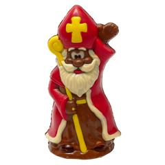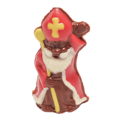 Celebrate the season with Saint Nicholas with scepter 30 g milk chocolate, handcrafted in Brussels with smooth Haitian cocoa and creamy milk for a festive and indulgent treat.