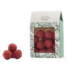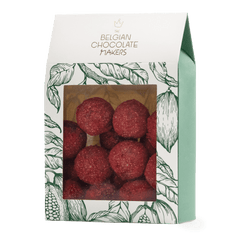 Discover our 160g pouch of Belgian chocolate truffles with raspberry. Handcrafted in Brussels, blending rich cacao with fruity notes for a refined and indulgent treat.