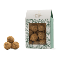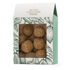 Indulge in our 160g pouch of Belgian chocolate truffles with speculoos. Handcrafted in Brussels, combining rich cacao with spiced biscuit flavors for a gourmet delight.