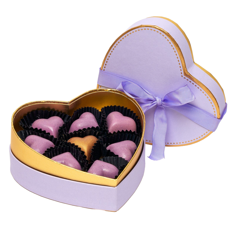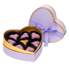 Indulge in our purple heart box of 9 Belgian pralines (135g), a luxurious selection of handmade chocolates crafted bean-to-bar in Brussels. A perfect Belgian gift filled with love and ethical sweetness.
