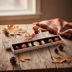 Discover our warm shadow pralines 105g, handcrafted Belgian chocolates with rich seasonal flavors. A gourmet gift box, perfect for sharing or indulgence.