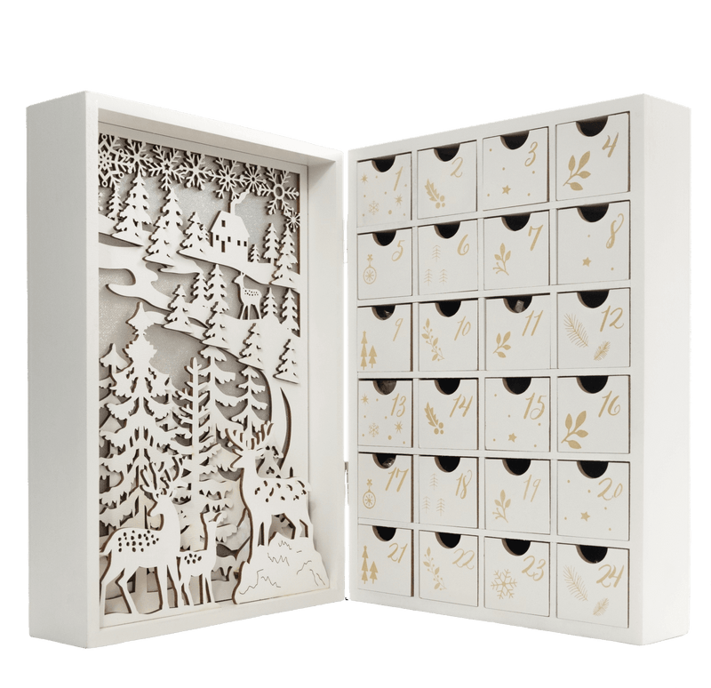 Countdown to Christmas with our reusable wooden lighted advent calendar book ! Behind each window hides a delicious handmade Belgian chocolate figurine. A charming keepsake to enjoy year after year.